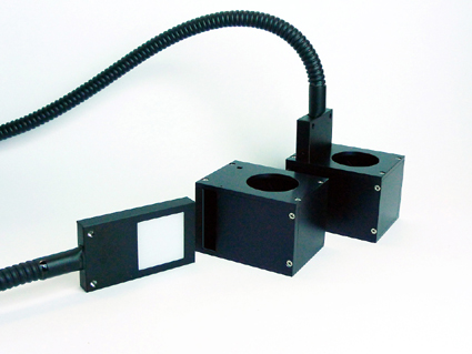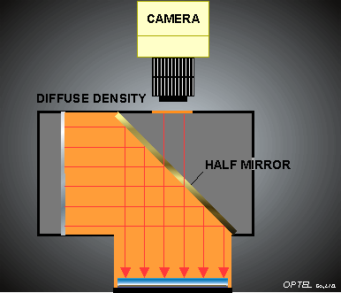 側面から均一な光を入れ、ハーフミラーで真下に照射します。